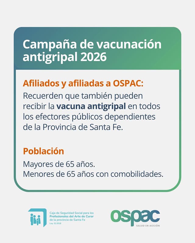 Recuerden que también pueden recibir la vacuna antigripal en todos los efectores públicos dependientes de la Provincia de Santa Fe.